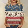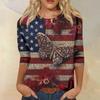 Damenmode Lässiges Oberteil mit Sieben-Viertel-Ärmeln, Unabhängigkeitstag-Print, Rundhalsausschnitt