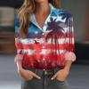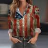 Damen-Hemdbluse, bedruckt, Knopfleiste, langärmelig, lässig, Basic, Hemdkragen, normales Oberteil