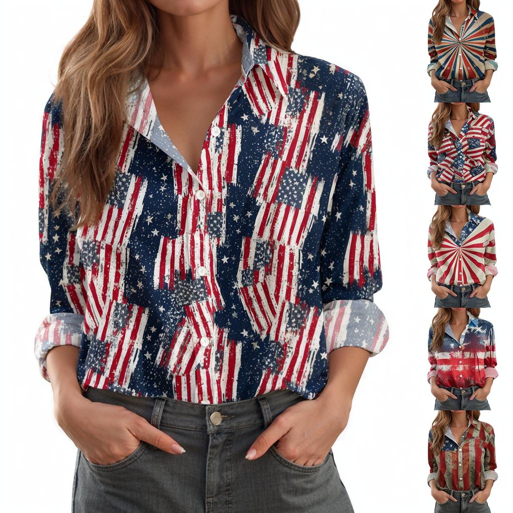 Damen-Hemdbluse, bedruckt, Knopfleiste, langärmelig, lässig, Basic, Hemdkragen, normales Oberteil — günstig online bei Joom kaufen