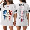 Damen Casual Mode V-Ausschnitt Sport Unabhängigkeitstag Druck Kurzarm Sport T-Shirt Top