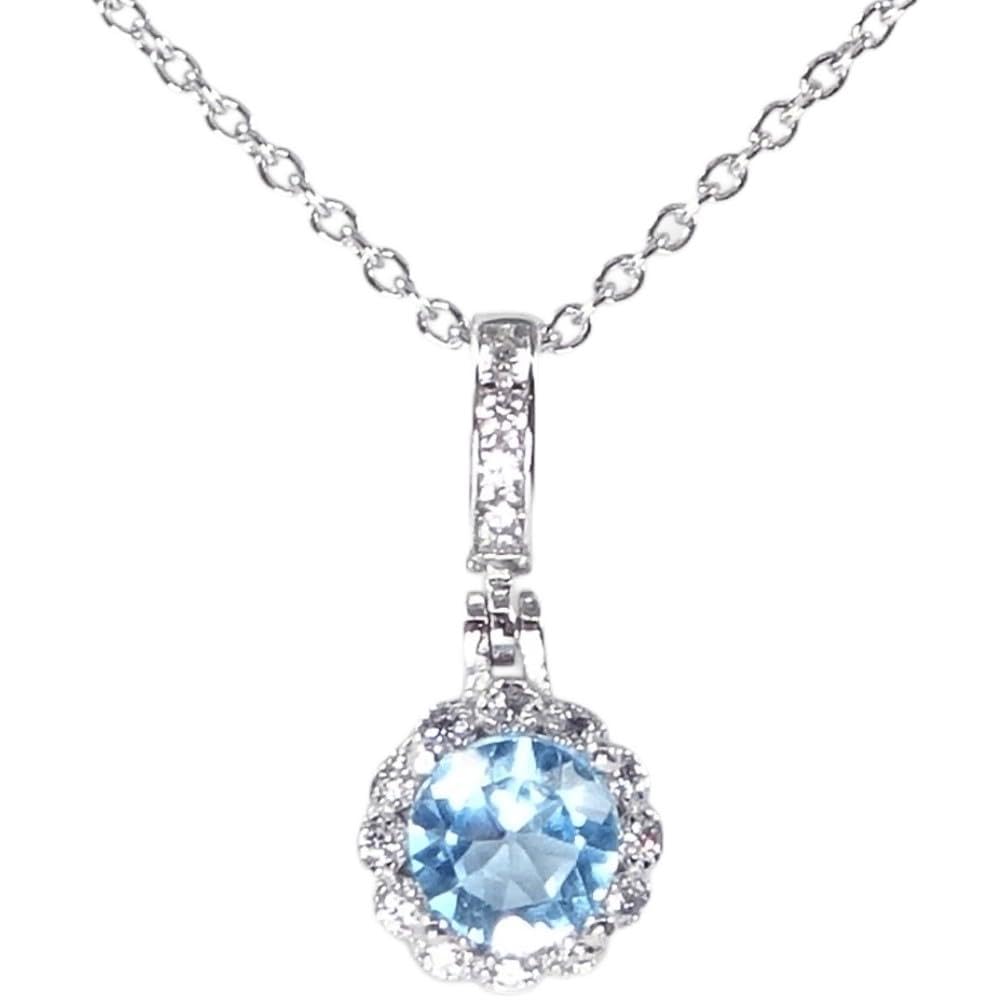 [Your and My Jewelry Box] Blue Topaz Necklace Pendant, SILVER925, 1.0 Carat, Luxurious CZ Surround Pendant [November Birthstone] [Gift Wrapped]