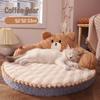 Four Seasons Antihaft-Fell Rundes Haustierbett im koreanischen Stil - Abnehmbares, waschbares großes Hunde- und Katzenbett mit Malteser-Bichon-Kissen.