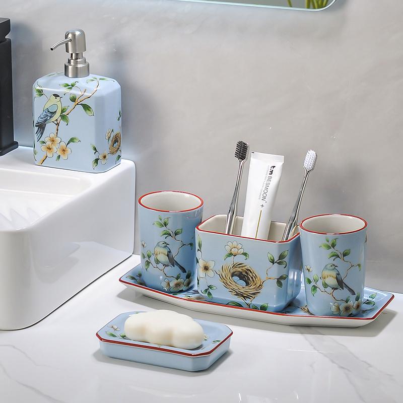 soap dispenser shampoo dispenser High temperature ice crack ceramic mouthwash cup lotion bottle set bathroom mouthwash cup