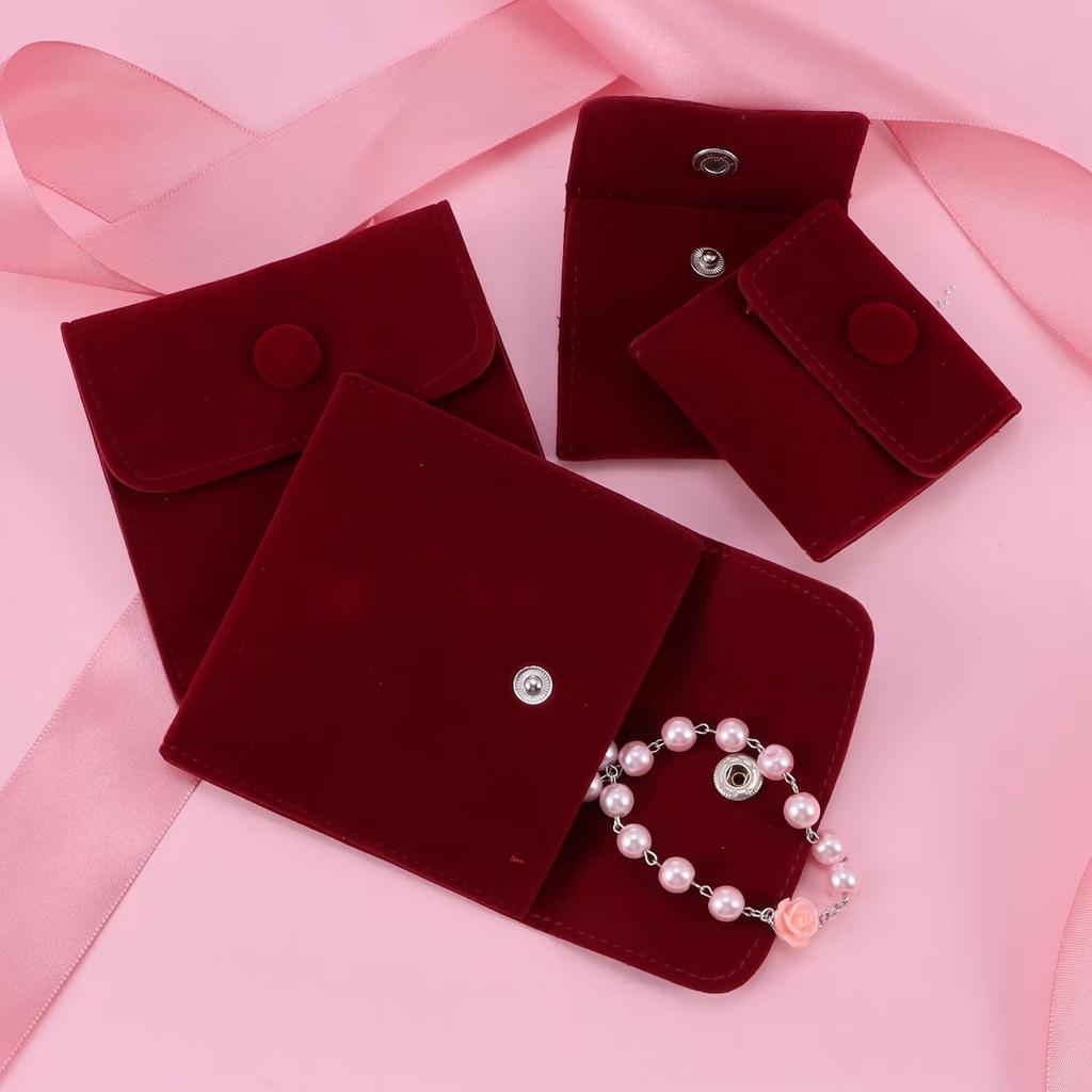 Dust Protect Portable Soft Velvet Gift Jewelry Bag Snap Button Packaging Bag Necklace Earrings Bracelet Ring Storage Pouch