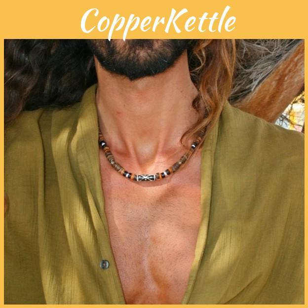 Geometric Mens Necklace With Coconut Shell Pendant Handmade Steel Chain For Casual Style — günstig online bei Joom kaufen