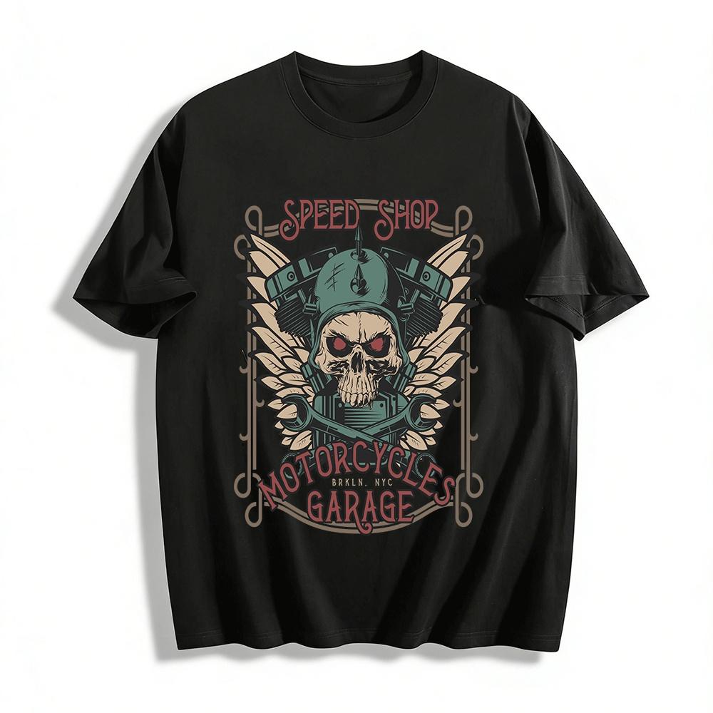 Vintage Skull Speed Shop Motorcycle Garage Graphic Tee For Men Pure cotton T-shirt