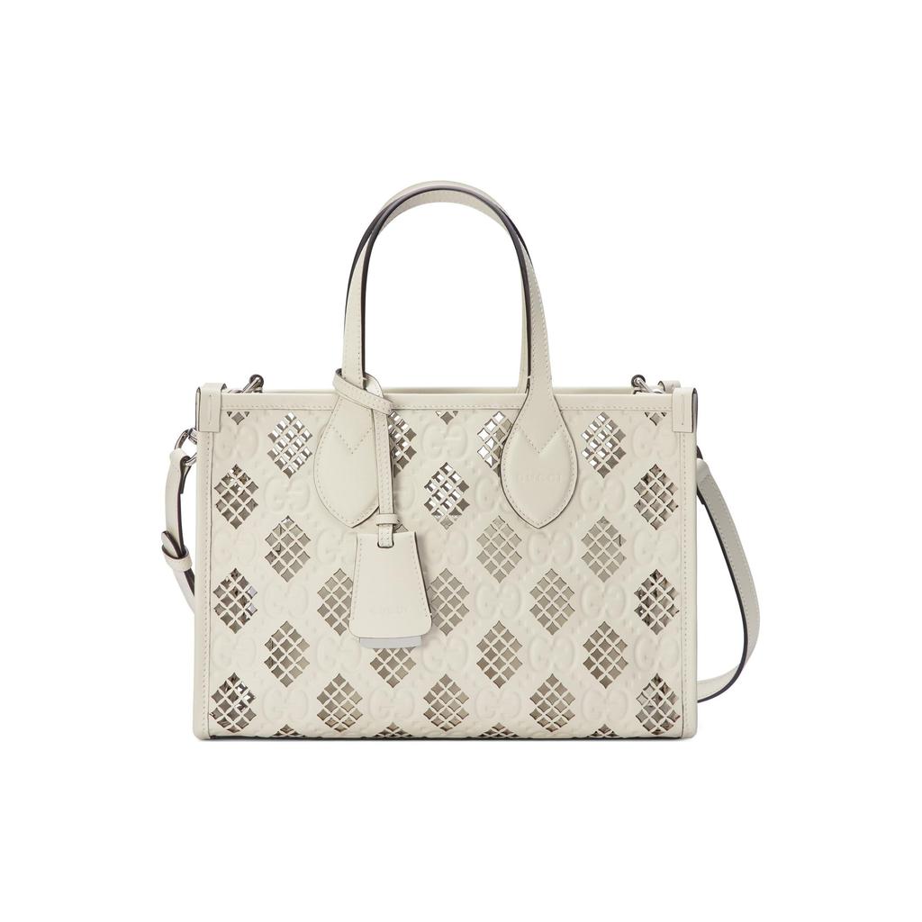 Gucci GG Embossed White Leather Cutout Detail Tote Bag With Removable Shoulder Strap For Unisex Luxury Daily Use