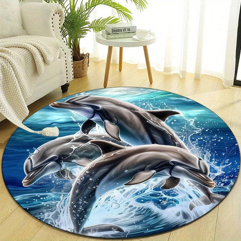 Polyester Round Dolphin Print Non-Slip Chair Mat - Crystal Velvet Bedroom Living Room Decorative Area Rug Carpet - Versatile Home Decor Beds