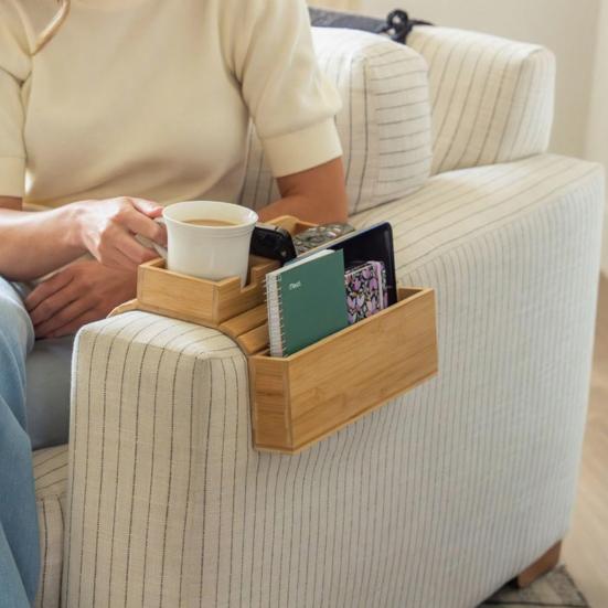 1/2Pcs Bamboo Couch Armrest Table Wooden Arm Tray with Removable Cup Holder Foldable Anti-Slip Sofa Side Remote Controls Phones Cups Snacks Organizer — günstig online bei Joom kaufen