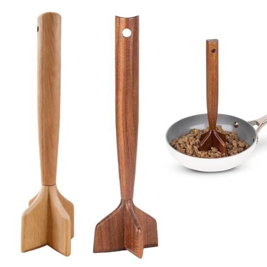 Use this wooden meat cutter and masher for beef, pork, potatoes, salads, and more replacing multiple gadgets with one handy tool.