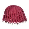 Knitting Hat Bohemian Style Hollow Design Women Hat with Faux Pearls Pendant Lightweight Elastic Hat Headwear