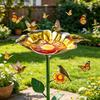 Handmade Metal Flower Garden Stake Outdoor Bird Bath Bowl for Bees Butterflies Pollinator Watering Station for Garden Lawn Yard Decor