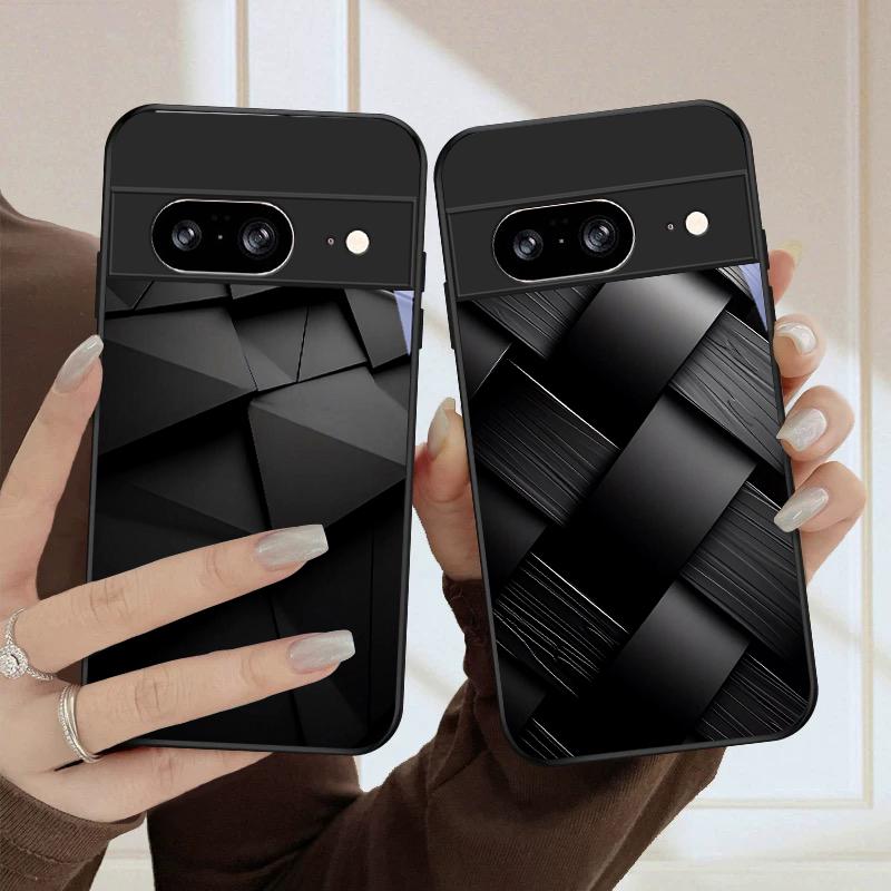 Dark geometric texture For Google Pixel 10 Pro XL Pixel 9 Pro XL Pixel 8a 7a Pixel 7 Pro Pixel 8 7 9 10 Black Glass Phone Case