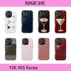 Ins Korean Style Leopard wine glass Phone Case for iPhone 17 16 15 14 13 12 11 Air Pro Max Plus Luxury Double-layer Back Cover