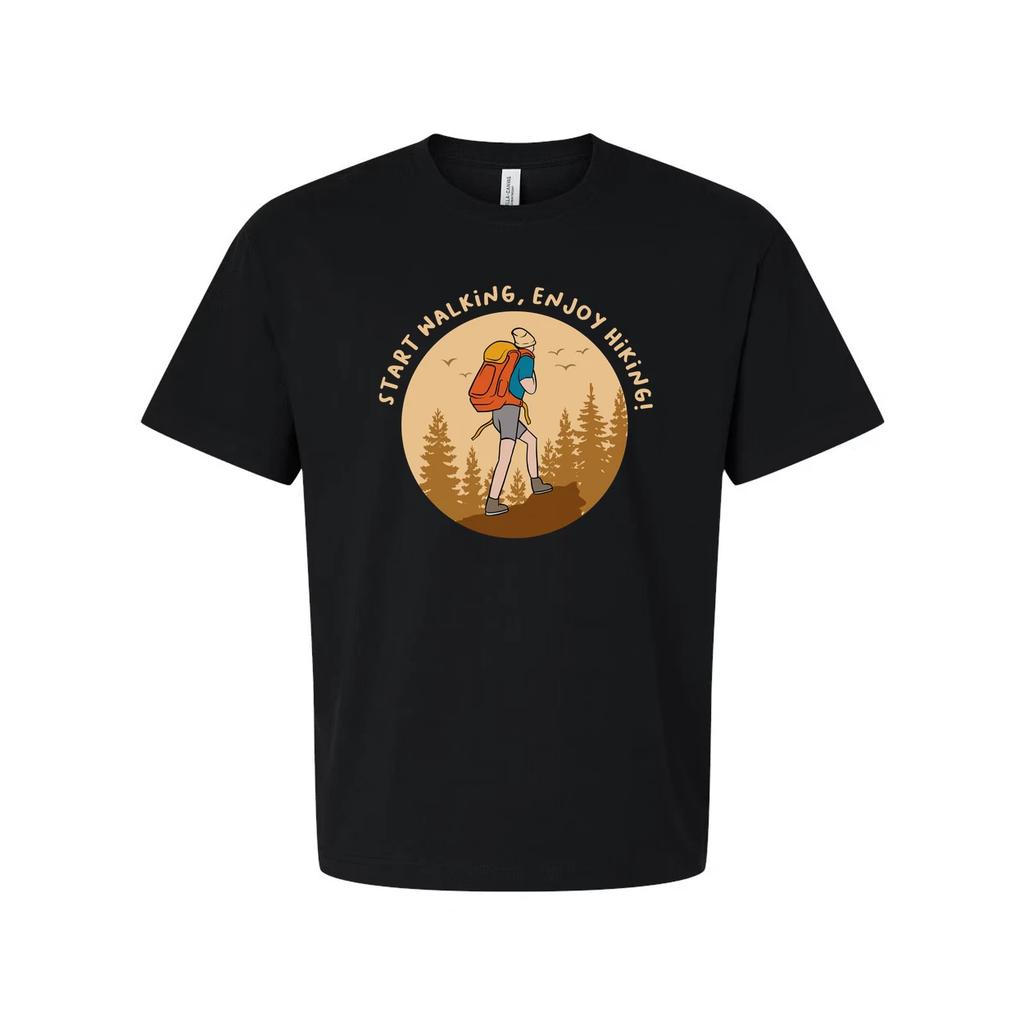 Unisex Outdoor Hiking T Shirt With Hiker Illustration In Circular Forest Scene F — günstig online bei Joom kaufen