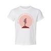 Outdoor-Wander-Themen-Unisex-T-Shirt mit Abenteurer-Silhouette und Pfirsichkreis