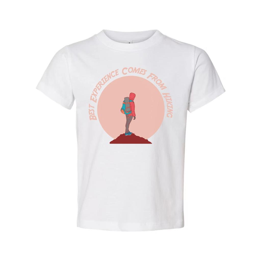 Outdoor Hiking Themed Unisex T Shirt With Adventurer Silhouette And Peach Circle — günstig online bei Joom kaufen
