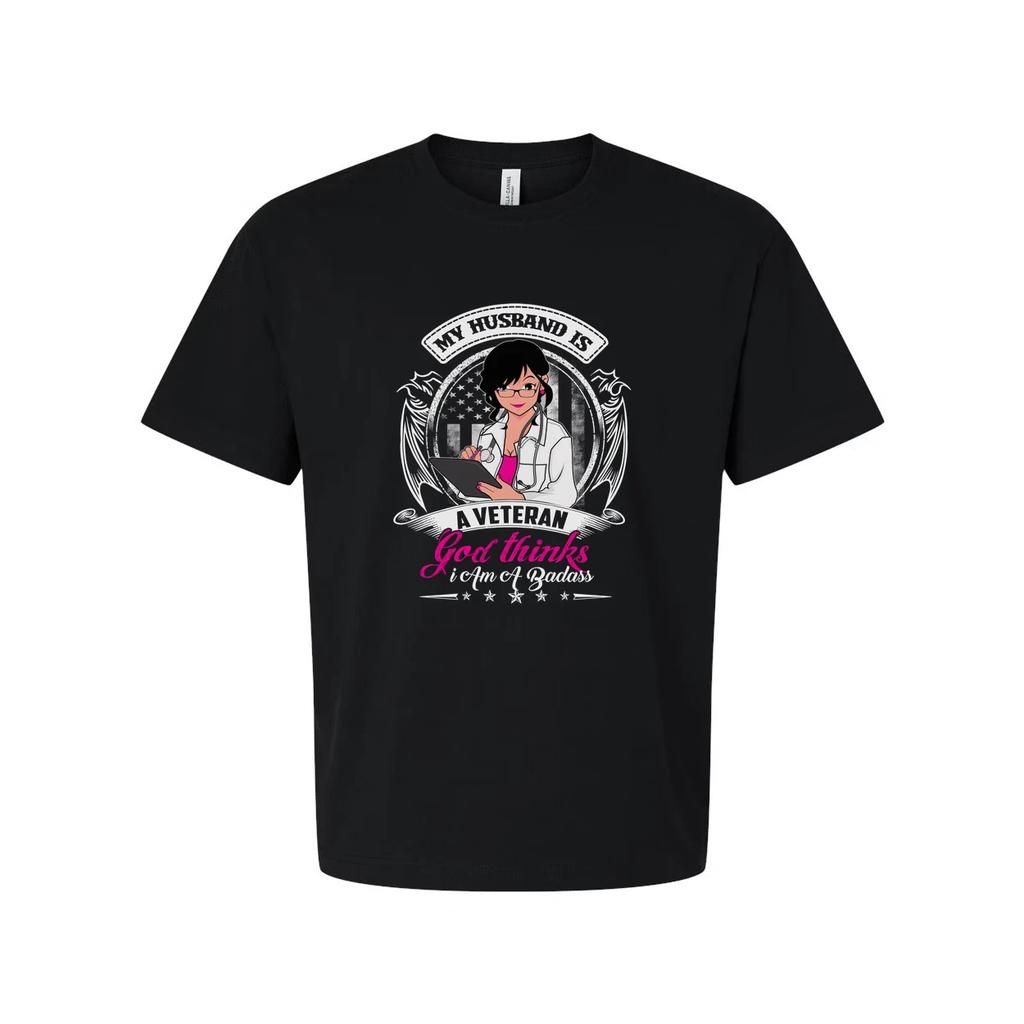My Husband Is A Veteran God Thinks I Am A Badass Graphic Tee For Proud Military