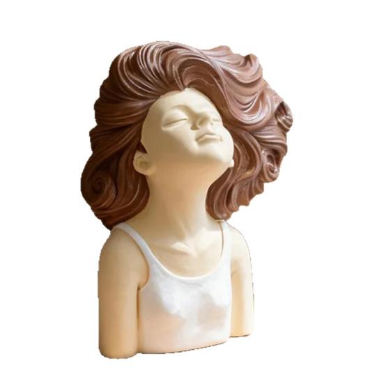 Braunhaariges lockiges Mädchen Header Figur Harzkopf Büste Skulptur für Schlafzimmer Wohnzimmer Heimbüro Schreibtisch Regal Dekoration