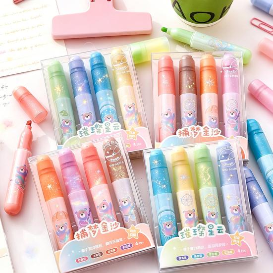 4Pcs Cute Bear Glitter Highlighter Set Large Capacity Pastel Markers for Journaling Notes Smooth Quick-Dry Fun School Supplies for Kids Students — günstig online bei Joom kaufen