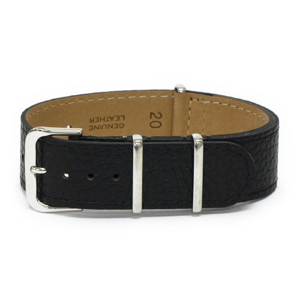 CASSIS Calfskin Watch Strap TYPE NATO LEATHER 20mm Black with Replacement Tool #189.601S019020