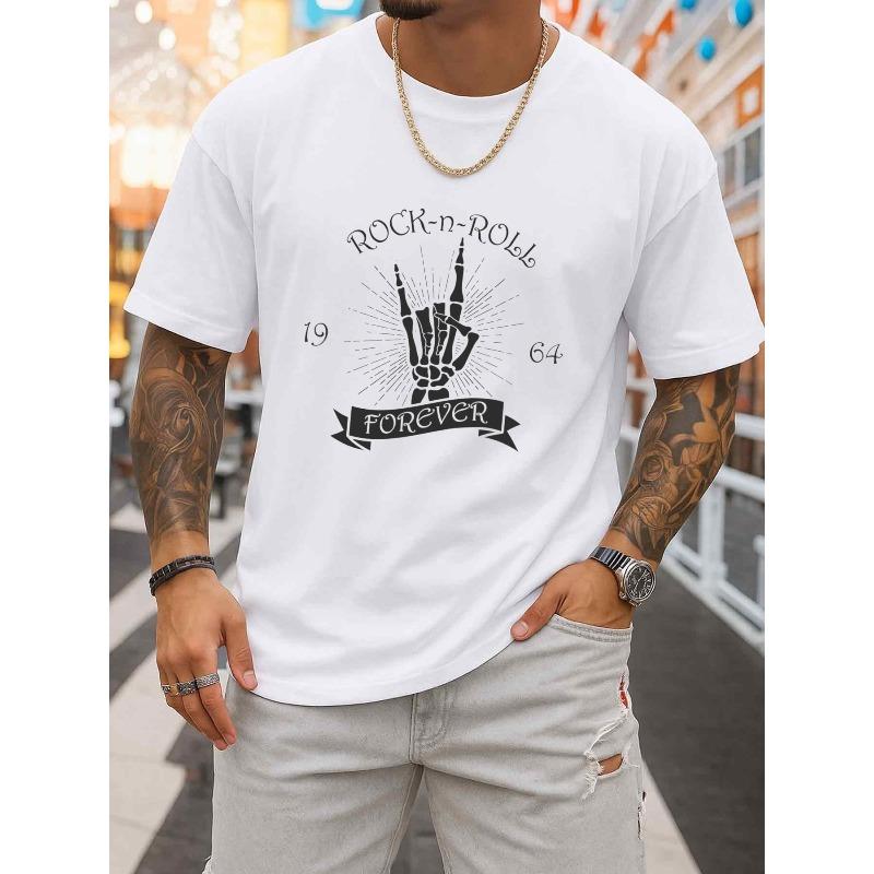 European sizes Rock-n-Roll Forever T-Shirt Mens Graphic T Shirts White Funny Short Fashionable Summer T-shirt — günstig online bei Joom kaufen