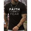 European size WALK BY FAITH Print Men's Casual T-shirt, Short Sleeve Versatile Comfy Tee Tops For Summer Outdoor