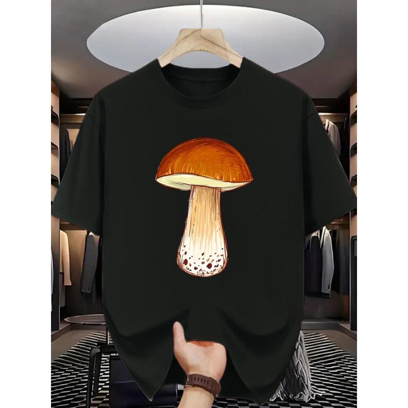 European Size Men' Realistic Mushroom Print T-Shirt - Casual Short Sleeve Round Neck Summer Top with Mushroom & Detailing, Soft Casual Attire — günstig online bei Joom kaufen