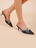 Shoetopia Women'S Black Elegant Ivory Satin Mule Heels With Crystal Bow Pointed Toe Slip-On Dress Rhinestone For Party