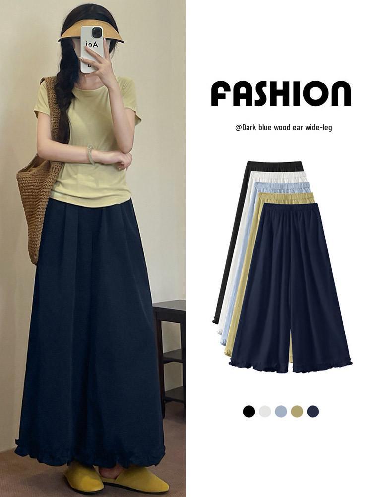 Korean Style Lace Patchwork Ice Silk Wide-Leg Pants for Women - High-Waisted, Versatile, Straight Leg, Summer 2026 Collection — günstig online bei Joom kaufen