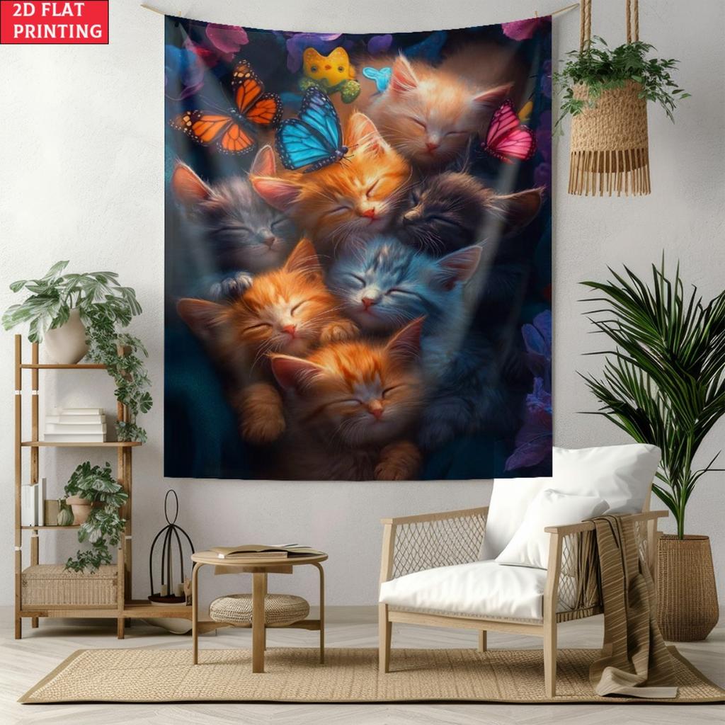 Cute Sleeping Kittens Tapestry Colorful Butterflies Cat Wall Hanging Aesthetic Nursery Room Decor Extra large size — günstig online bei Joom kaufen