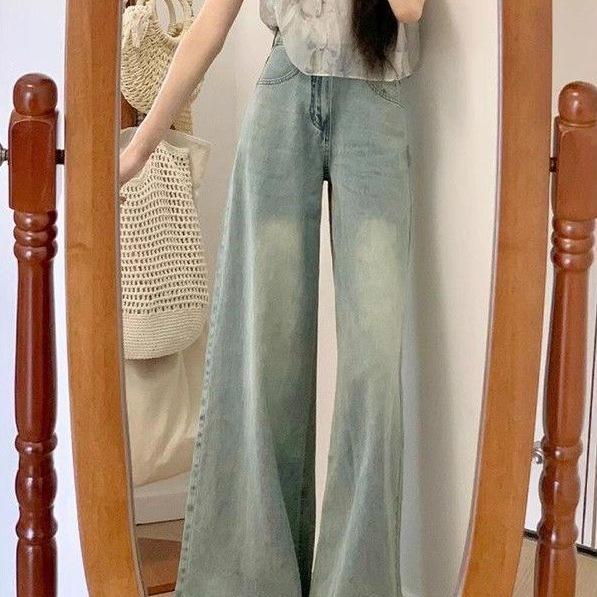 Petite Women's Retro High-Waisted Wide-Leg Flare Jeans - Summer Slimming Floor-Length — günstig online bei Joom kaufen