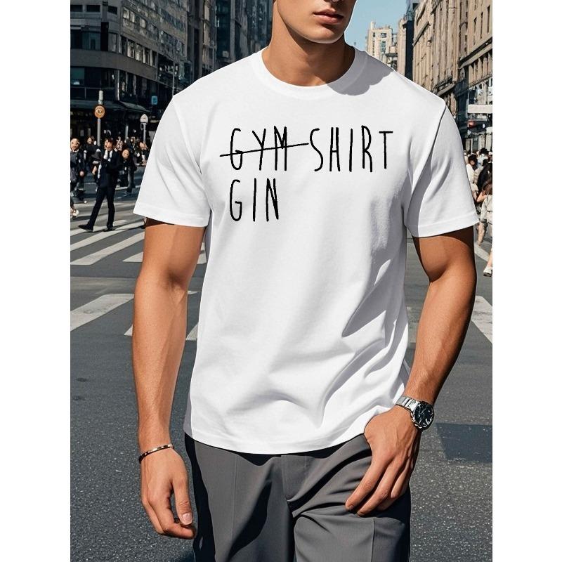 Men'S Casual Crew Neck T-Shirt, Gym GIN Short Sleeve Top, Slight Stretch, Regular Fit, Geometric Pattern, Summer Wear — günstig online bei Joom kaufen