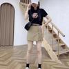 2025 Summer Khaki Women's Denim Drawstring Skirt Pants with Irregular Hem and Anti-Exposure Design
