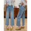 Korean Retro High-Waist Slimming Elastic Jeans for Women - Cropped, Loose, Petite Straight Leg — günstig online bei Joom kaufen