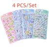 4Pcs/Set Shiny Crystal Decorative Stickers Cute Animal Flower Embellishments For Journal Diy Phone Case