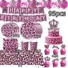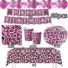 Rosa Leopard Geburtstagsparty Dekoration Tier Leopard Thema Geschirr Becher Teller Banner Ballons Geburtstagsparty Zubehör Geschenke