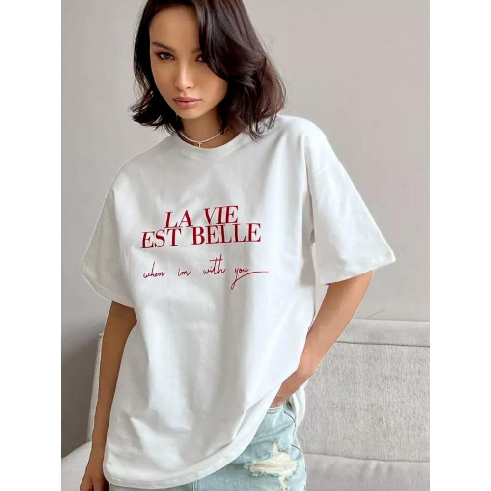 Summer American Ins Mid-length Temperament Printed T-shirt Street Personality Women's Letters Versatile Short-sleeved Top — günstig online bei Joom kaufen