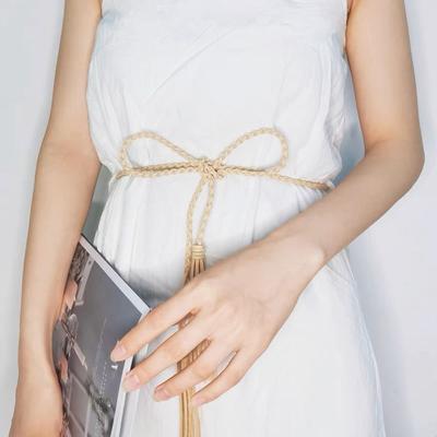 Fringe Tassel Fabric Scarf Long Flowy Solid Color Waist Sash Cape Belt Oriental Elegant Vacation Accessory