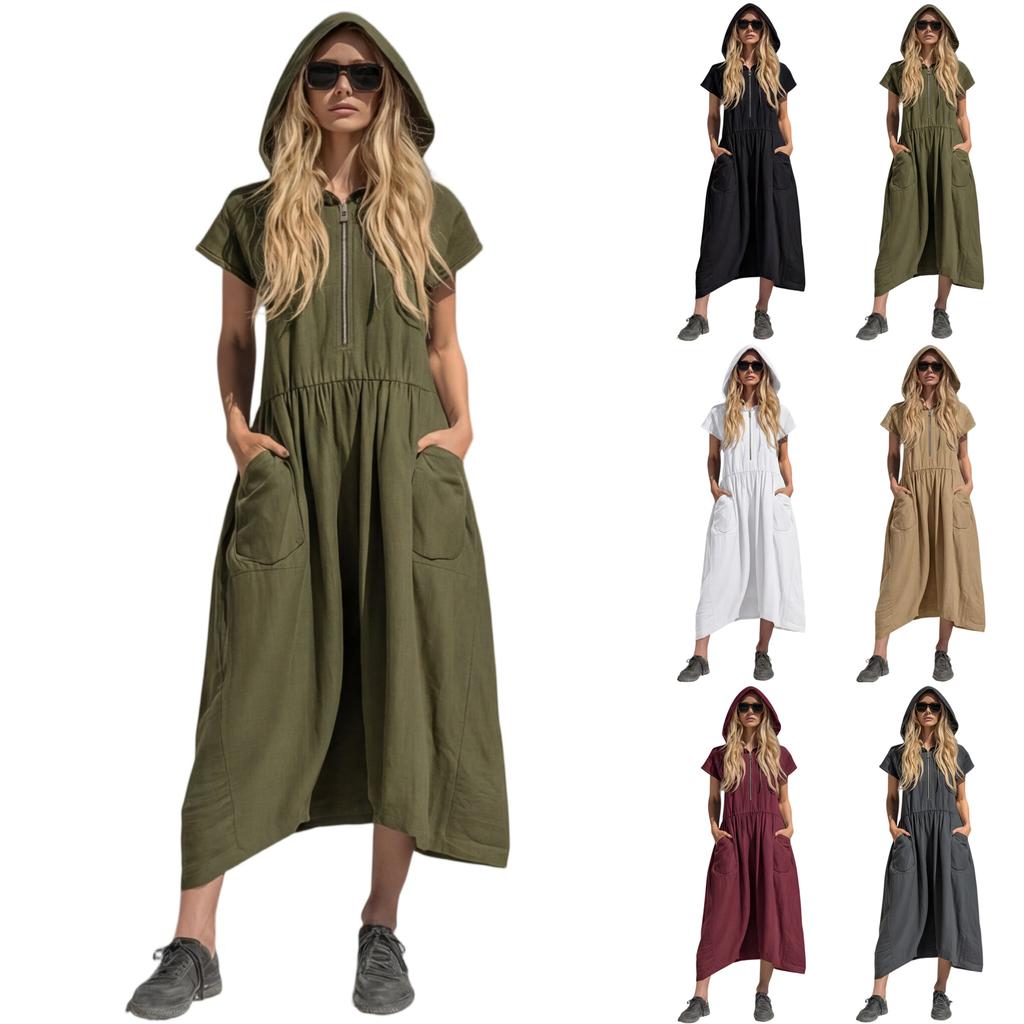 Women's Vintage Cotton And Linen Hooded Half-zip Mid-length Dress — günstig online bei Joom kaufen