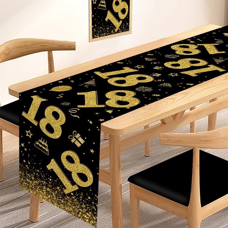 18 30 40 50 Year Old Black Gold Table Runner Happy Birthday Party Decoration Adult 30th 40th 50th 60t Birthday Tablecloth Banner
