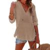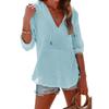 Spring and Summer Beach Cover-Up Hooded Long-Sleeved V-Neck Pockets Hooded Shirt for Women