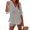Spring and Summer Beach Cover-Up Hooded Long-Sleeved V-Neck Pockets Hooded Shirt for Women — günstig online bei Joom kaufen