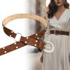 Vintage Women Wide Belt Rivet Western Cowboy Belt Fashion Leather Waistband Women