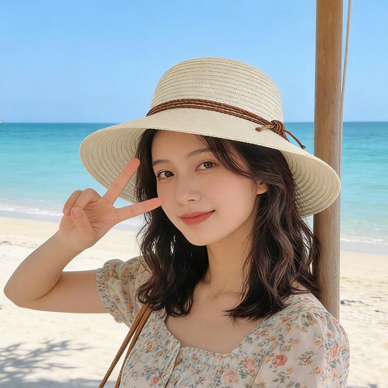Straw hat female sunscreen summer travel beach hat literary and simple face small sun hat