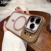 Luxury Magnetic Metal TPU Case For iPhone 17 16 15 14 Pro Max Plus Case Translucent Acrylic Hard Bumper Shockproof Protect Cover