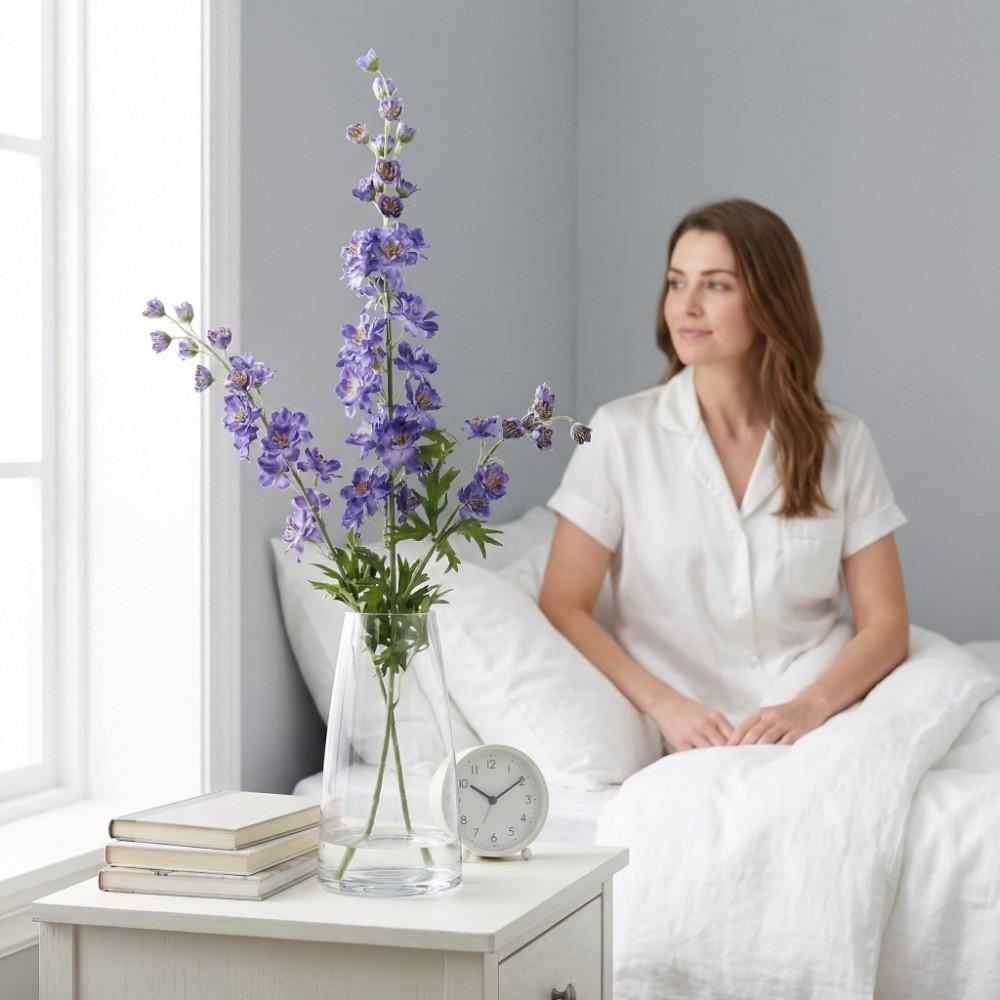 Green Leaves Artificial Larkspur Flower Real Touch Handmade Faux Hyacinth Flower Branch Artificial Realistic