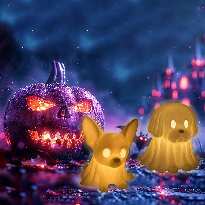 Halloween Dachshund Ghost Lamp, Halloween French Bulldog Glowing Ghost Figurine, Cute Dog Display Statue Nightlight Decorations