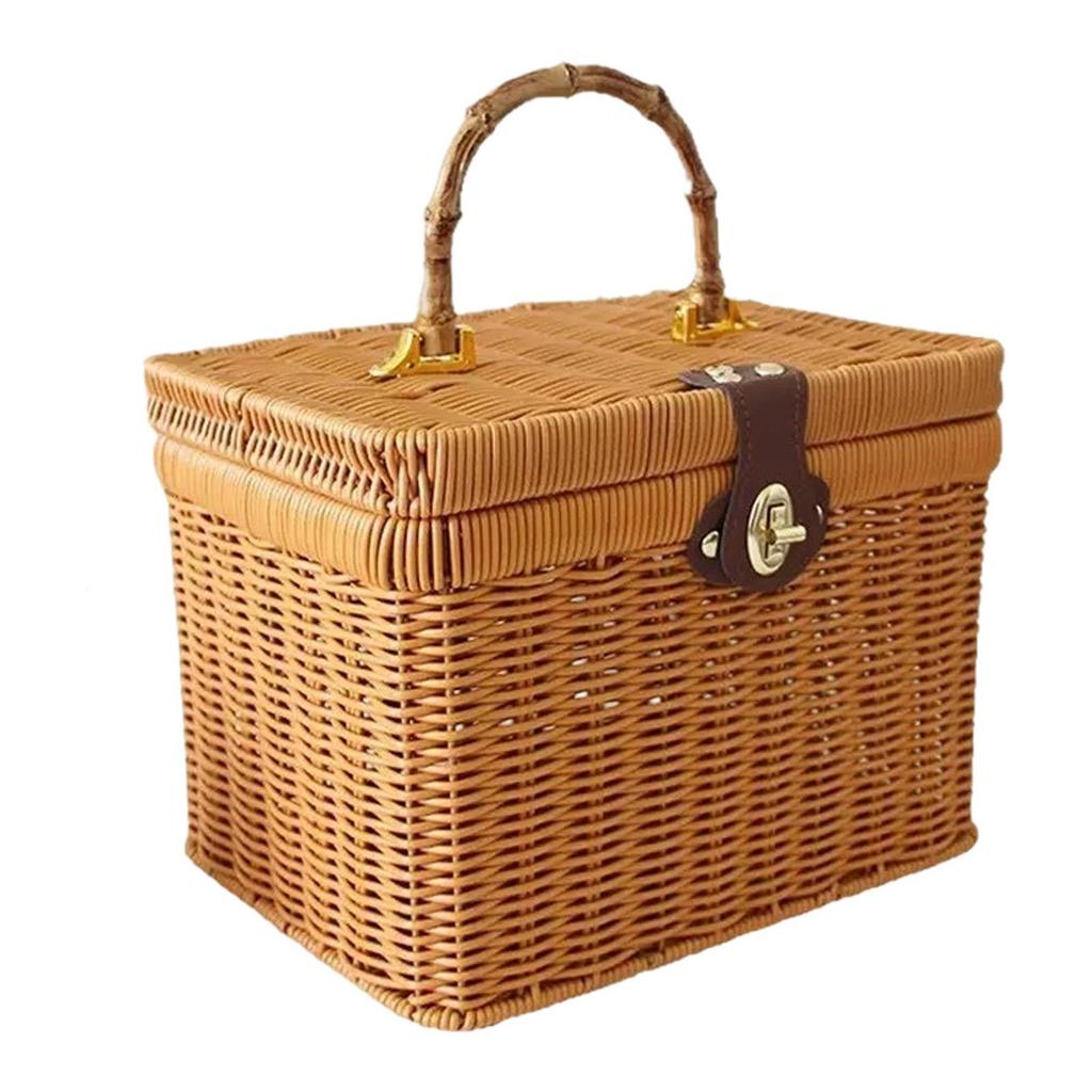 Handwoven Storage Basket with Lid Treasure Box Empty Gift Basket Display Suitcase for Party