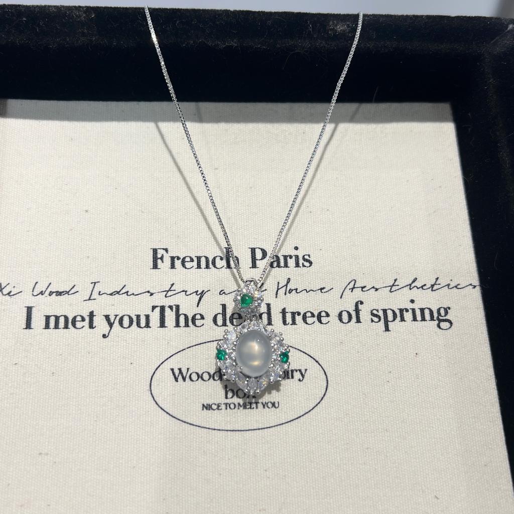 New Chinese-style ice chalcedony necklace for women, palace-style jade green stone inlay, light luxury national-style agate pendant collarbone chain